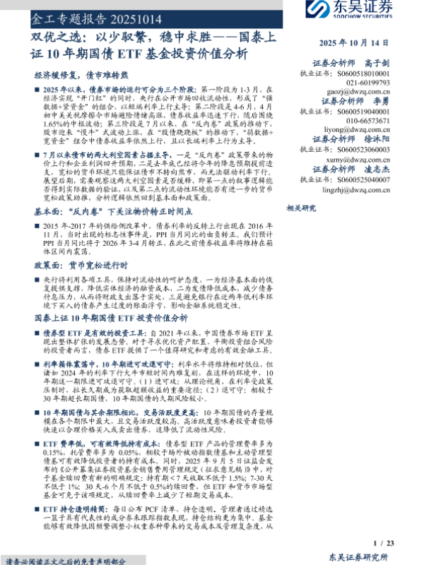 【东吴证券】【202510】双优之选:以少驭繁,稳中求胜——国泰上证10年期国债 ETF基金投资价值分析-23页 证券期货研究报告