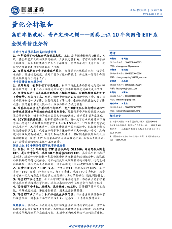 【国盛证券】【20250617】高胜率低波动,资产定价之锚——国泰上证10年期国债ETF基金投资价值分析-19页 证券期货研究报告