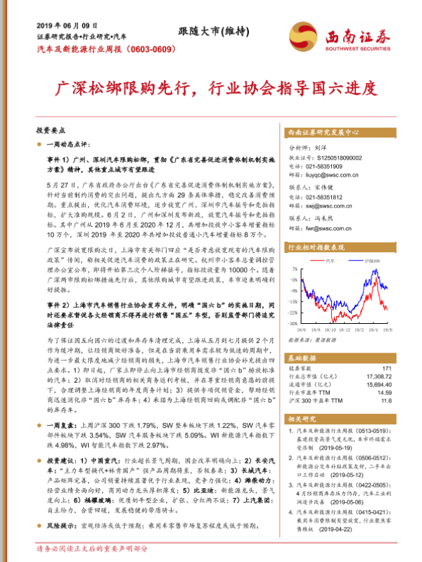【西南证券】【20190609】汽车及新能源行业周报:广深松绑限购先行,行业协会指导国六进度-12页 行业研究