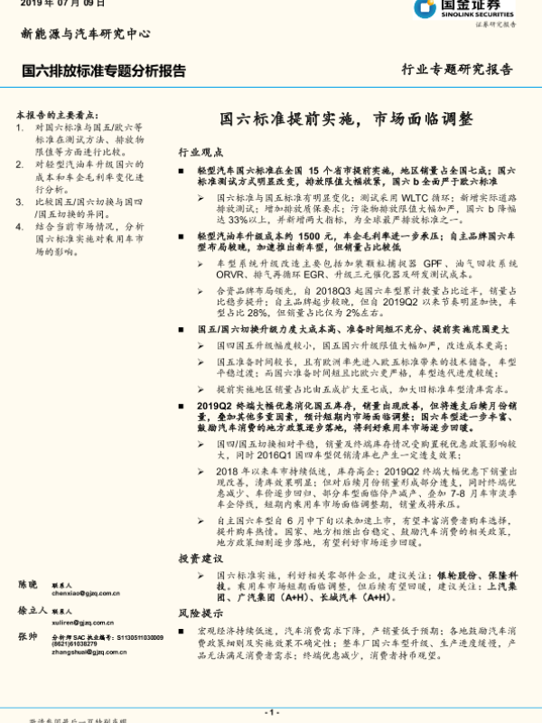 【国金证券】【20190709】20190709-国金证券-新能源与汽车行业专题研究报告:国六排放标准专题分析报告-国六标准提前实施,市场面临调整-23页 行业研究