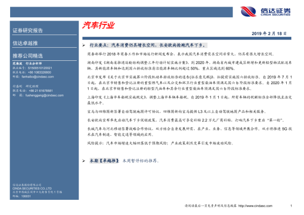 【信达证券】【20190218】汽车行业-3页 行业研究