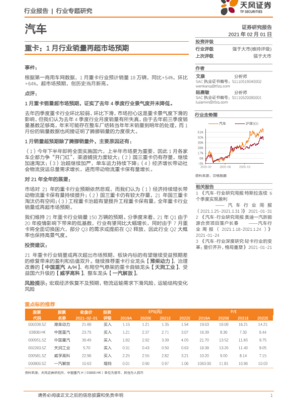 【天风证券】【20210201】重卡:1月行业销量再超市场预期-11页 行业研究