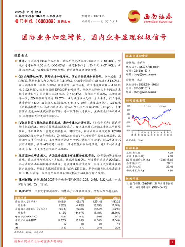 【西南证券】【202511】普门科技(688389):2025年三季报点评-6页 证券期货研究报告
