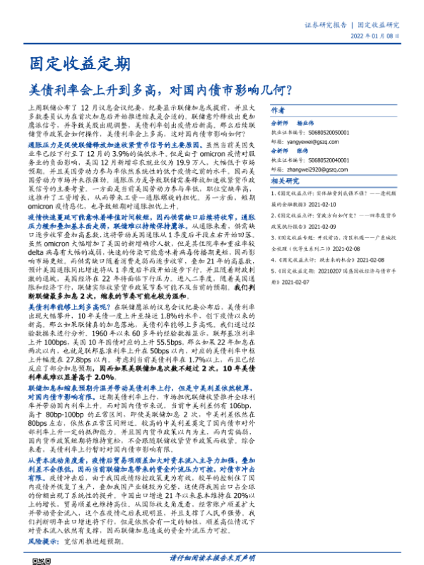 【国盛证券】【20220108】固定收益定期:美债利率会上升到多高,对国内债市影响几何?-21页 行业研究