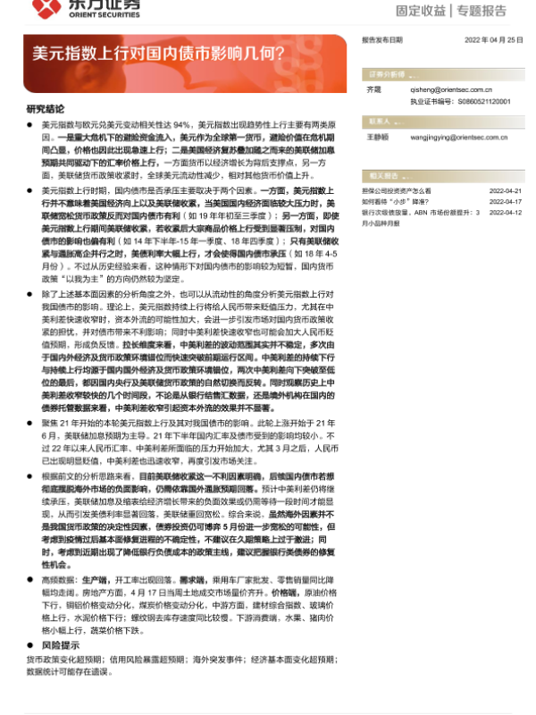 【东方证券】【20220425】美元指数上行对国内债市影响几何?-22页 行业研究