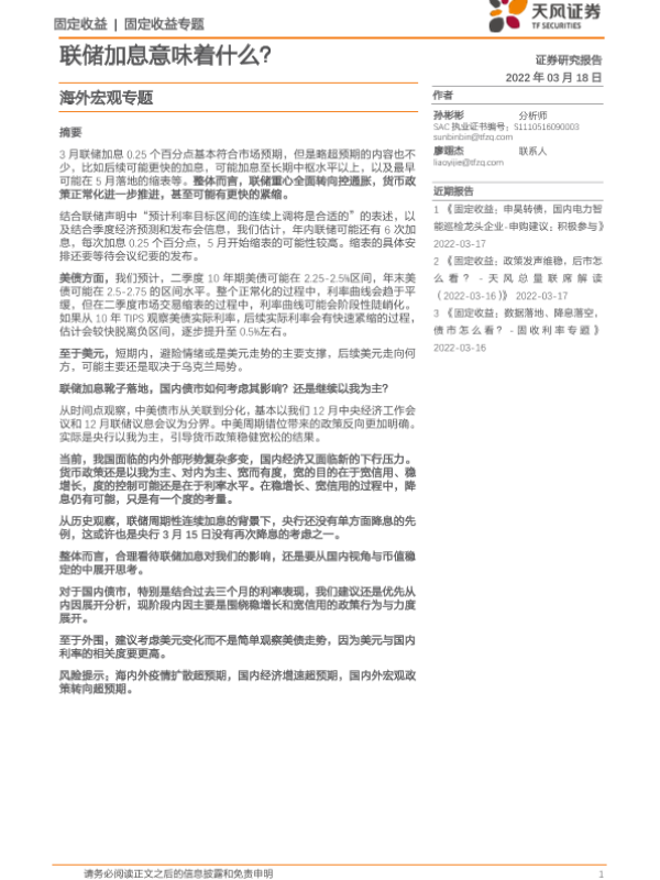 【天风证券】【20220318】海外宏观专题:联储加息意味着什么?-14页 行业研究