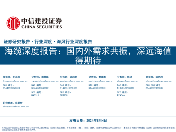 【中信建投证券】【20240804】海缆深度报告:国内外需求共振,深远海值得期待-60页 行业研究