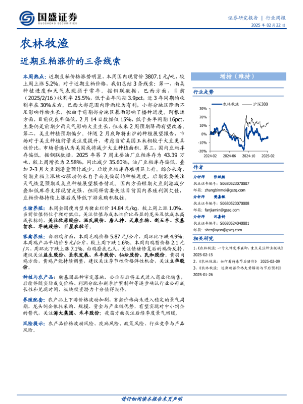 【国盛证券】【20250222】20250222-国盛证券-农林牧渔行业周报:近期豆粕涨价的三条线索-12页 行业研究