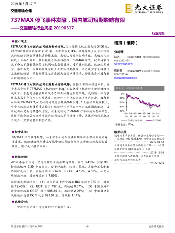 【光大证券】【20190317】737MAX停飞事件发酵,国内航司短期影响有限-8页 行业研究