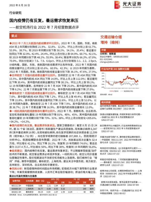 【光大证券】【20220816】航空机场行业2022年7月经营数据点评-7页 行业研究