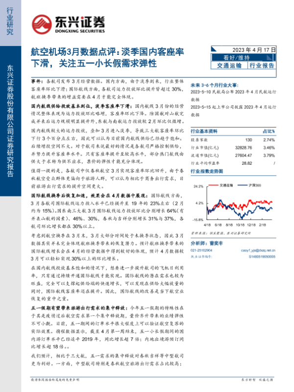 【东兴证券】【20230417】航空机场3月数据点评:淡季国内客座率下滑,关注五一小长假需求弹性-11页 行业研究
