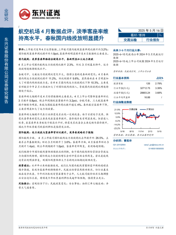 【东兴证券】【20250516】交通运输行业航空机场4月数据点评-12页 证券期货研究报告