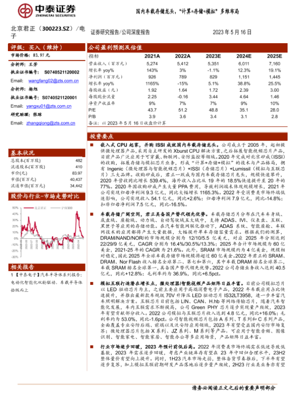 【中泰证券】【20230516】20230516-中泰证券-北京君正-300223.SZ-国内车载存储龙头,“计算+存储+模拟”多维布局-44页 行业研究