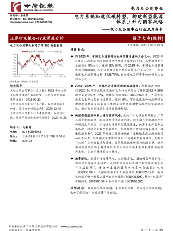 【中原证券】【20230320】电力系统加速低碳转型-构建新型能源体系上升为国家战略-35页 行业研究