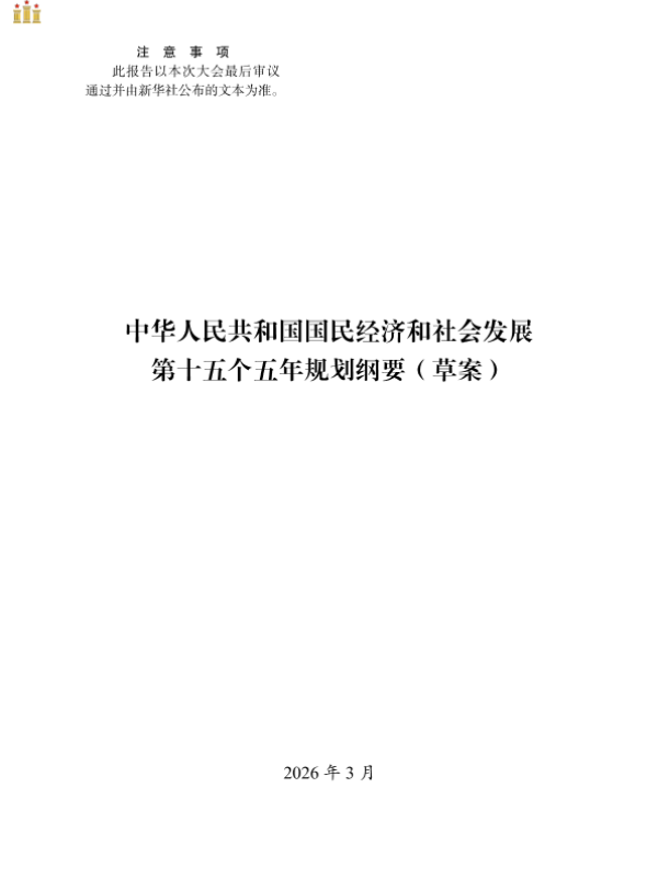 【中华人民共和国国务院】【202603】中华人民共和国国民经济和社会发展第十五个五年规划纲要(草案)-141页 政策文件