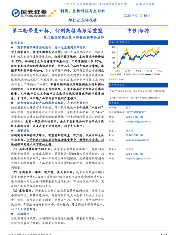 【国元证券】【20200119】第二轮国家药品集中带量采购事件点评:第二轮带量开标,仿制药格局振荡重塑-18页 行业研究