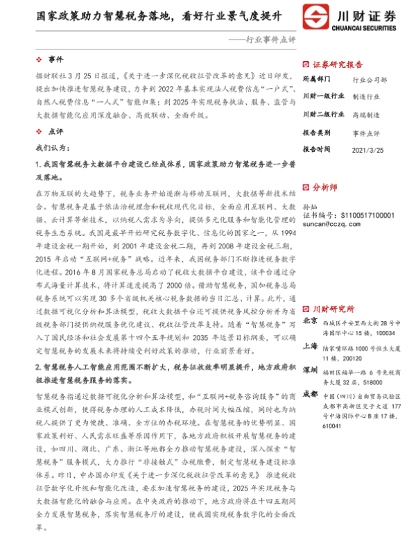 【川财证券】【20210325】国家政策助力智慧税务落地,看好行业景气度提升-3页 行业研究