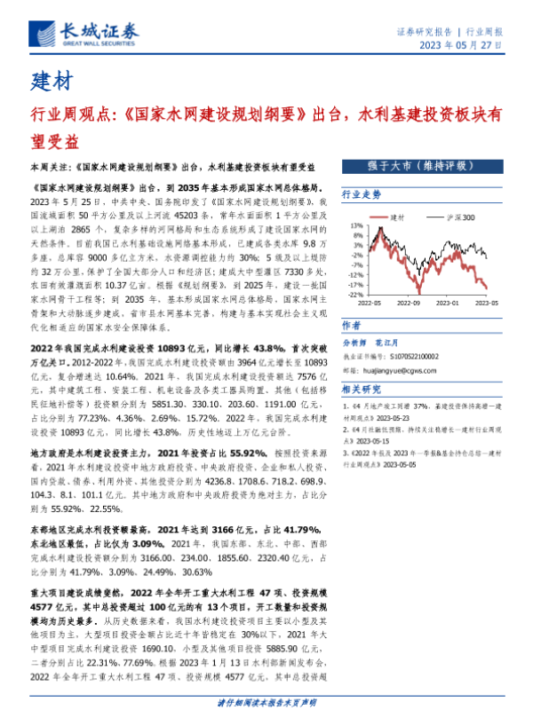 【长城证券】【20230527】建材行业周观点:《国家水网建设规划纲要》出台,水利基建投资板块有望受益-19页 行业研究