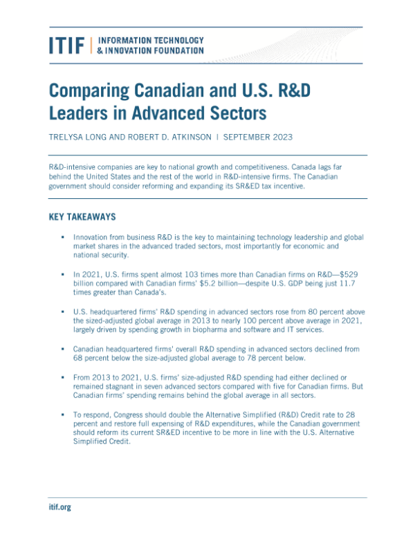【Information Technology and Innovation Foundation (ITIF)】【20230901】Comparing Canadian and U.S. R&D Leaders in Advanced Sectors-42页 行业研究