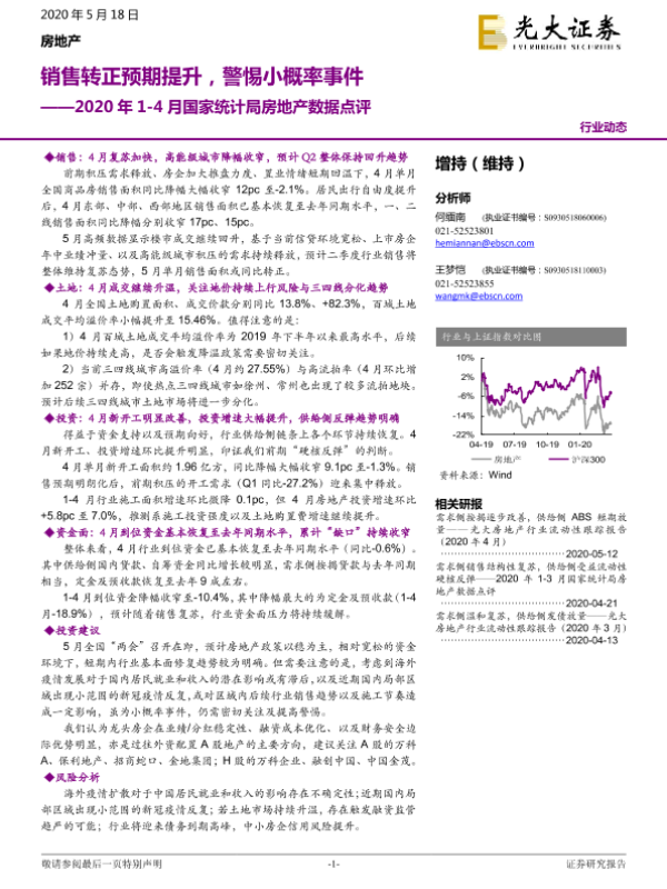 【光大证券】【20200518】2020年1-4月国家统计局房地产数据点评-13页 行业研究