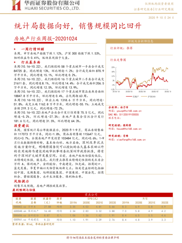 【华西证券】【20201024】房地产行业周报:统计局数据向好,销售规模同比回升-26页 行业研究