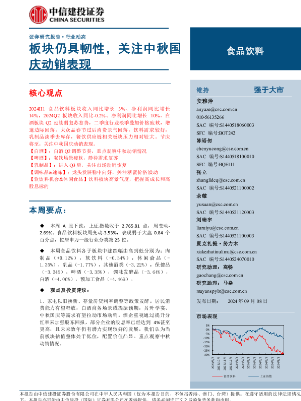 【中信建投证券】【20240908】食品饮料行业:板块仍具韧性,关注中秋国庆动销表现-24页 行业研究