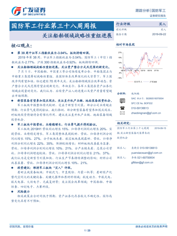 【广发证券】【20190922】国防军工行业第三十八周周报:关注船舶领域战略性重组进展-23页 行业研究
