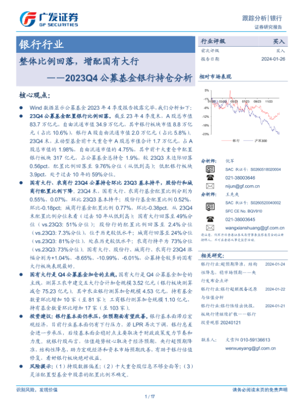 【广发证券】【20240126】银行业2023Q4公募基金银行持仓分析:整体比例回落,增配国有大行-17页 行业研究