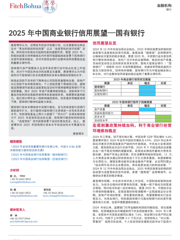 【惠誉博华】【20241216】2025年中国商业银行信用展望—国有银行-7页 行业研究