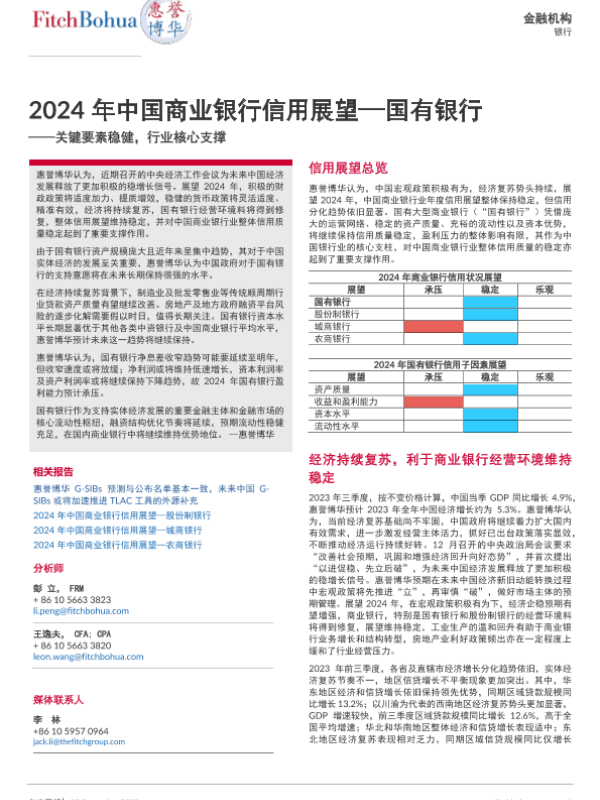 【惠誉博华】【20231222】2024年中国商业银行信用展望—国有银行-6页 行业研究