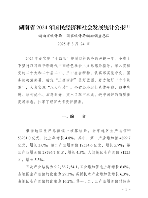 【湖南省统计局 国家统计局湖南调查总队】【20250324】湖南省2024年国民经济和社会发展统计公报-27页 统计公报