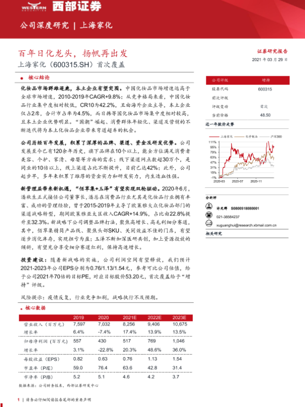 【西部证券】【20210329】20210329-西部证券-上海家化-600315.SH-首次覆盖:百年日化龙头,扬帆再出发-43页 行业研究