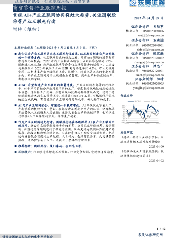 【东吴证券】【20230409】商贸零售行业跟踪周报:重视AI+产业互联网协同提效大趋势,关注国联股份等产业互联先行者-12页 行业研究