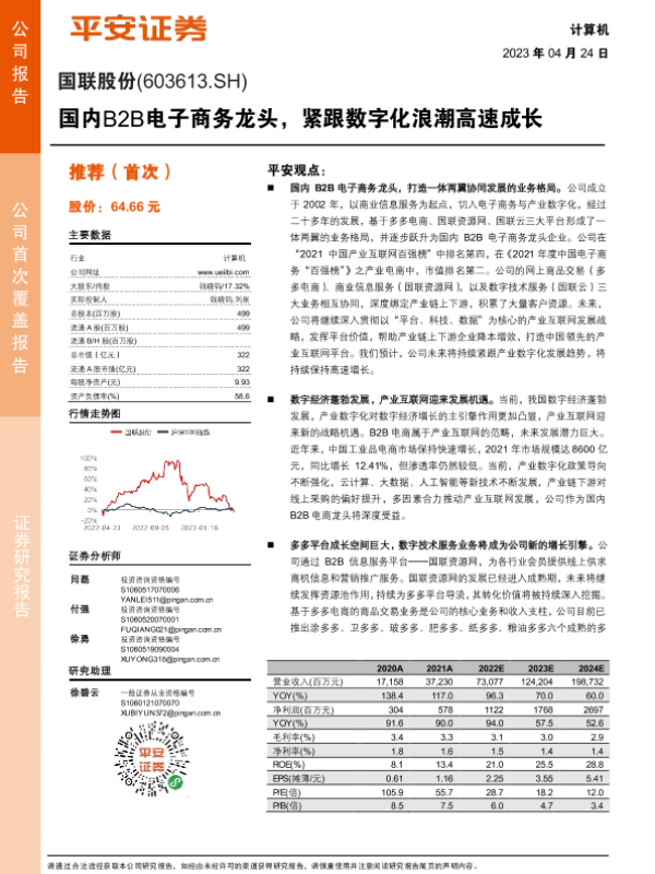 【平安证券】【20230424】国内B2B电子商务龙头,紧跟数字化浪潮高速成长-30页 行业研究