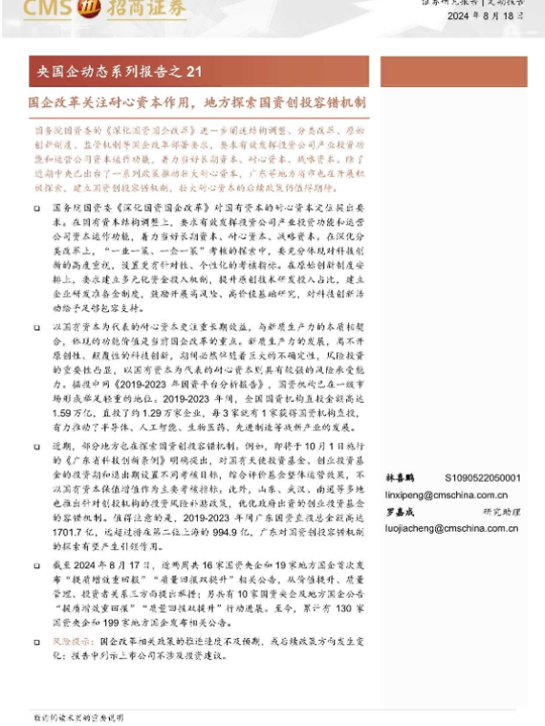 【海通证券】【20240818】央国企动态系列报告之21:国企改革关注耐心资本作用,地方探索国资创投容错机制-33页 行业研究