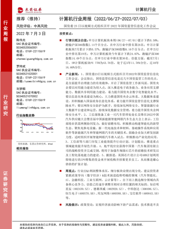 【东莞证券】【20220703】计算机行业周报:国资委23日以视频方式组织召开2022年国资监管信息化工作会议-9页 行业研究