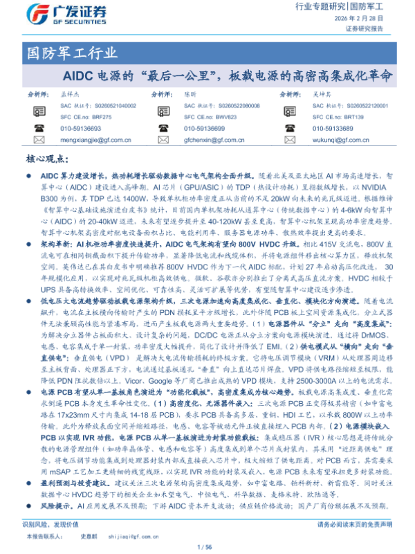 【广发证券】【202503】AIDC电源的“最后一公里”,板载电源的高密高集成化革命-56页 证券期货研究报告