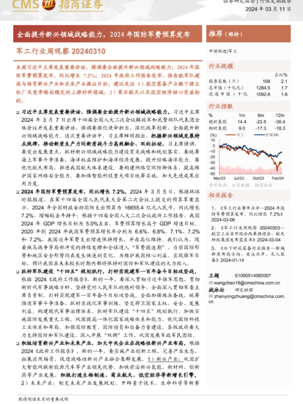 【海通证券】【20240311】20240311-招商证券-军工行业周观察:全面提升新兴领域战略能力,2024年国防军费预算发布-11页 行业研究