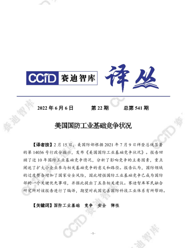 【美国国防部】【20220606】美国国防工业基础竞争状况-28页 行业研究