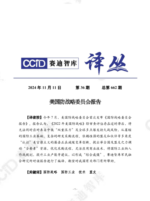 【美国防战略委员会】【20241111】美国防战略委员会报告-24页 政策文件