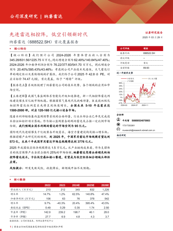 【西部证券】【20250329】纳睿雷达(688522)首次覆盖报告:先进雷达相控阵,低空引领新时代-31页 证券期货研究报告