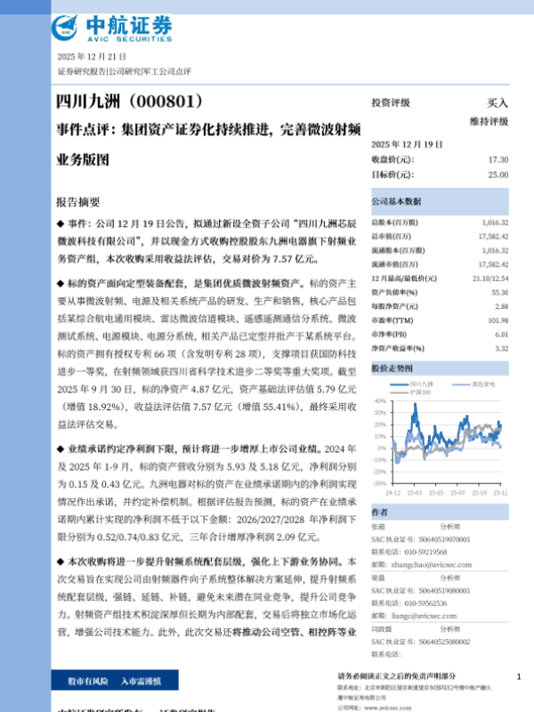 【中航证券】【202512】事件点评 集团资产证券化持续推进,完善微波射频业务版图-7页 证券期货研究报告
