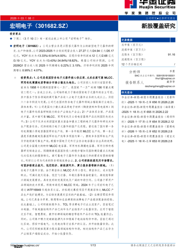 【华金证券】【202603】宏明电子(301682.SZ)-13页 证券期货研究报告