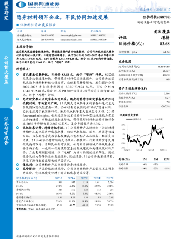 【国泰海通证券】【202511】隐身材料领军企业,军民协同加速发展-26页 公司研究