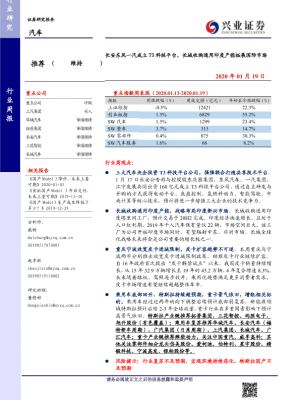 【兴业证券】【20200119】长安东风一汽成立T3科技平台,长城收购通用印度产能拓展国际市场-17页 行业研究