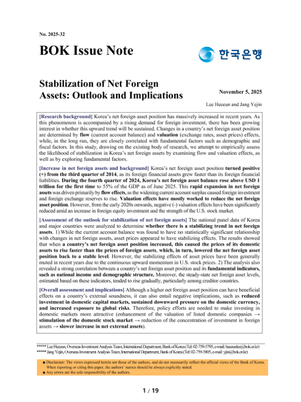 【Bank of Korea】【202511】Stabilization of Net Foreign Assets Outlook and Implications-19页 行业研究
