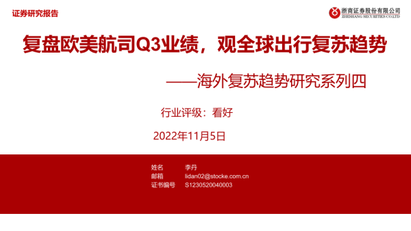 【浙商证券】【20221105】复盘欧美航司Q3业绩,观全球出行复苏趋势-28页 行业研究