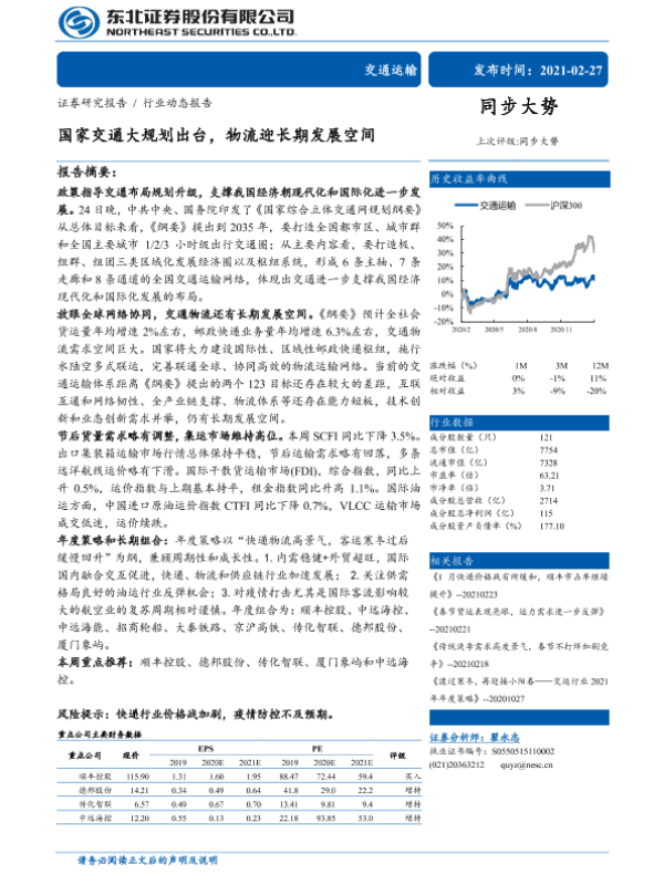 【东北证券】【20210227】国家交通大规划出台,物流迎长期发展空间-16页 行业研究