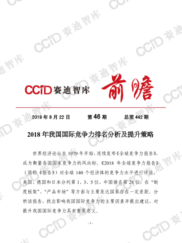 【世界经济论坛】【2018】2018年我国国际竞争力排名情况及提升策略-7页 行业研究