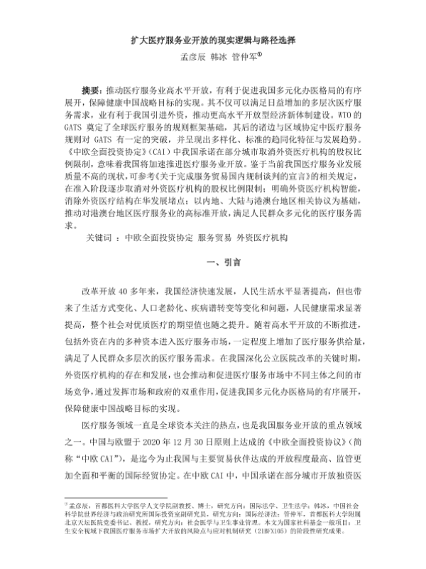 【中国社会科学院】【20221001】扩大医疗服务业开放的现实逻辑与路径选择-14页 行业研究